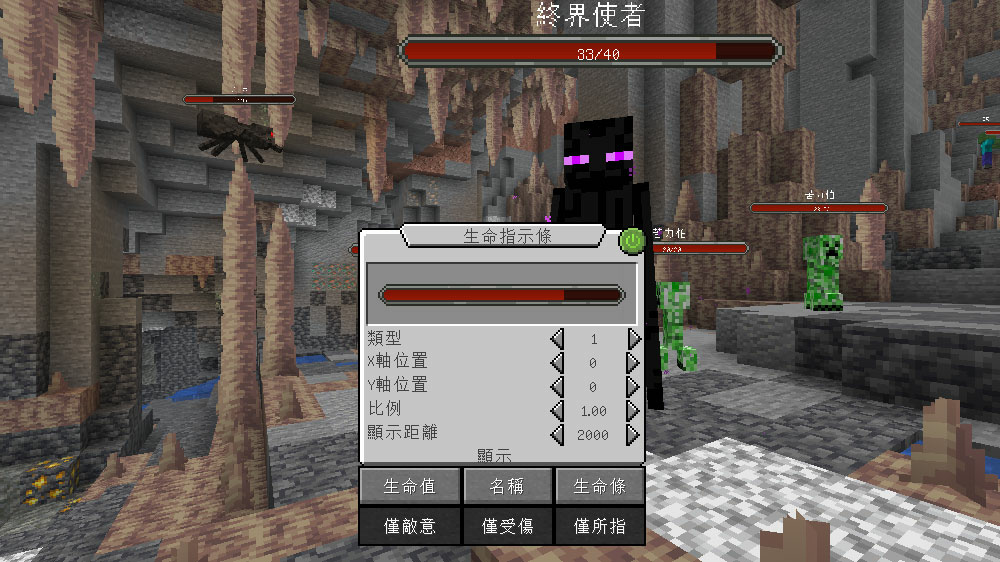 Minecraft【YDM's MobHealthBar 生命值顯示條模組】繁體中文化